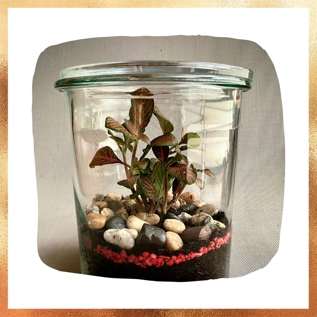 Une plante, de la mousse et/ou gravier. Personnalisable à volonté et sur demande ; Prix de base 20 €